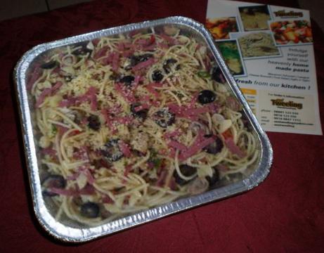 *Macaroni dengan Otak, smoked Lidah, Salami, jamur, etc.